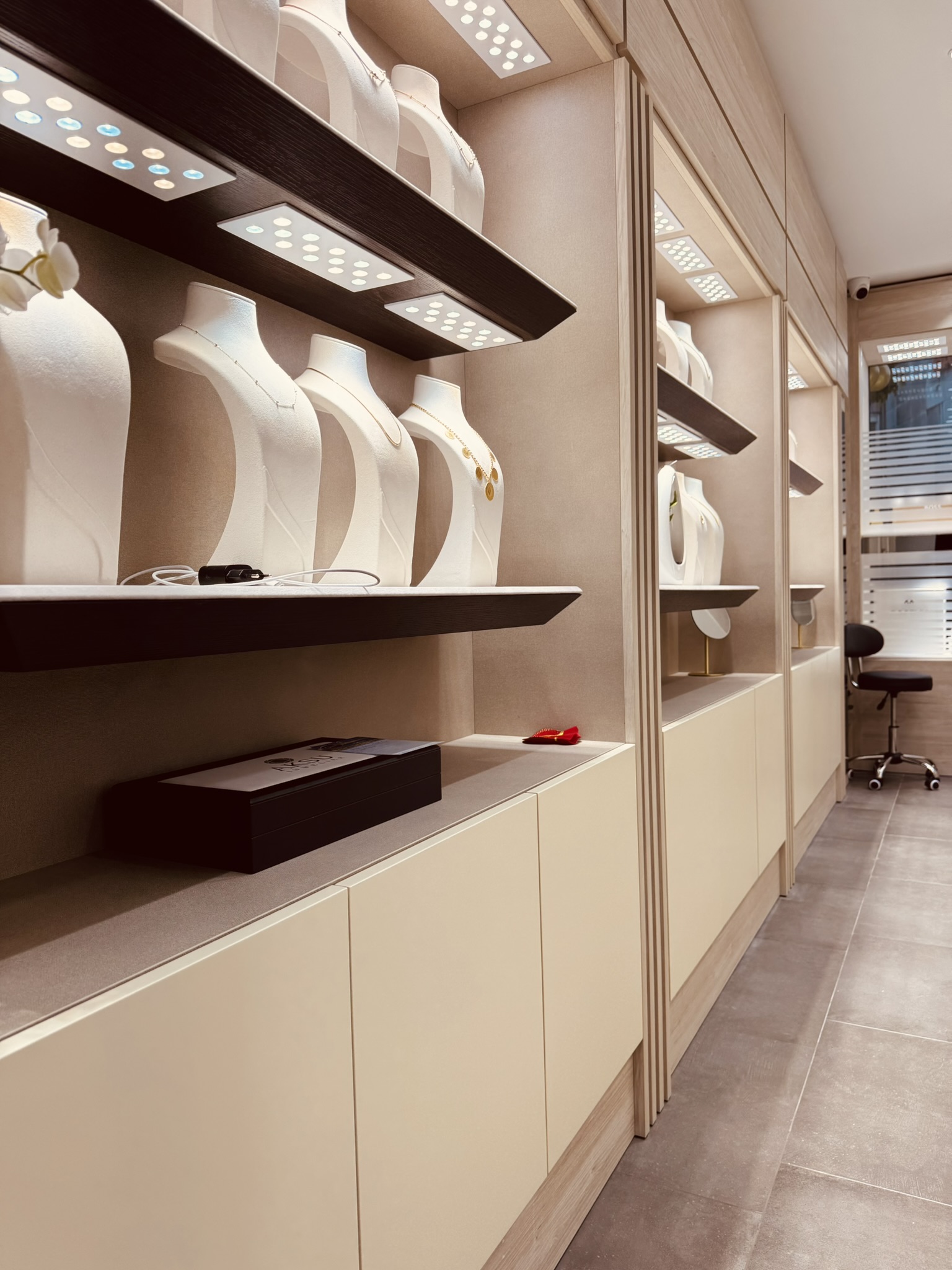 Un gioiello nasce per brillare, e lo spazio che lo ospita deve essere all’altezza. Progettiamo arredamenti su misura per gioiellerie che vogliono distinguersi per eleganza, raffinatezza e funzionalità. Ogni elemento – dai banchi espositivi alle vetrine, dai pannelli retroilluminati alle aree di accoglienza – è pensato per valorizzare i prodotti e offrire un’esperienza d’acquisto memorabile. Usiamo materiali ricercati, illuminazioni studiate al dettaglio e soluzioni tecniche su misura per garantire massima sicurezza e comfort, sia per il cliente che per il personale. Con noi, la tua gioielleria diventa un palcoscenico dove ogni creazione può risplendere al meglio.